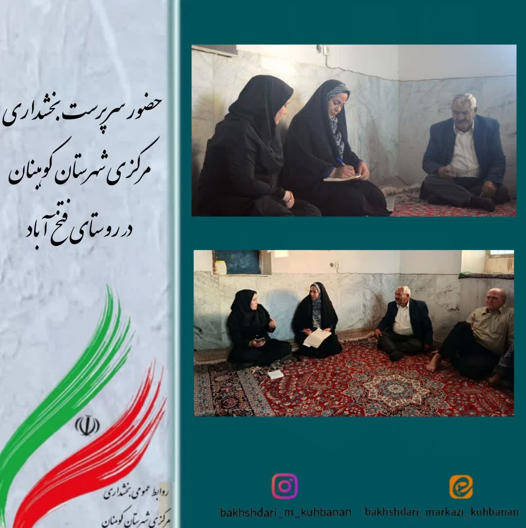 سرکار خانم صدیقه ایزدی، سرپرست بخشداری مرکزی شهرستان کوهبنان، با استقبال گرم اهالی شریف روستا و دهیار محترم، سرکار خانم ایرانی، وارد روستای فتحآباد شدند. در این دیدار که در مسجد روستا برگزار شد، مردم ضمن خوشامدگویی، دغدغهها و مشکلات خود را با بخشدار در میان گذاشتند. همچنین اعضای محترم شورای اسلامی روستا نیز در جلسه حضور داشتند و به بیان مسائل و مطالبات اهالی پرداختند. سرکار خانم ایزدی در این جمع صمیمانه تأکید کردند: «تمام تلاشم را برای ایجاد تحول در روستاها به کار خواهم بست و در این مسیر هیچ چیز را دریغ نخواهم کرد»