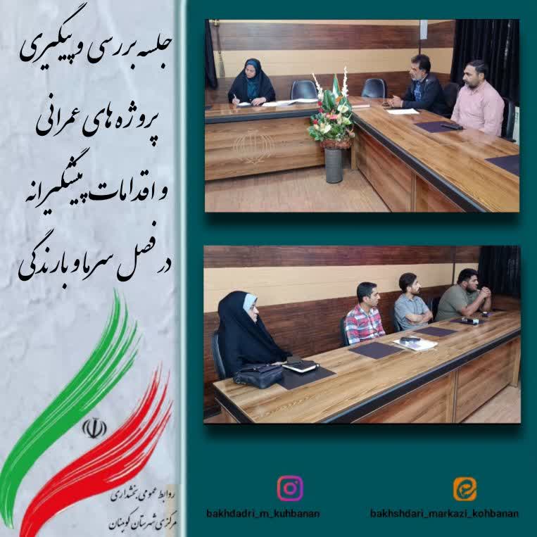 با عنایت به تاکیدات مهندس خدابخشی فرماندار کوهبنان در جلسه شورای اداری در زمینه اجرای پروژه های عمرانی و سرعت بخشیدن به پروژه های مرتبط، جلسه ای در راستای تسریع پروژه های عمرانی روستاهای بخش مرکزی و بررسی موانع و مشکلات با حضور سرپرست بخشداری مرکزی و دهیاران برگزار شد .