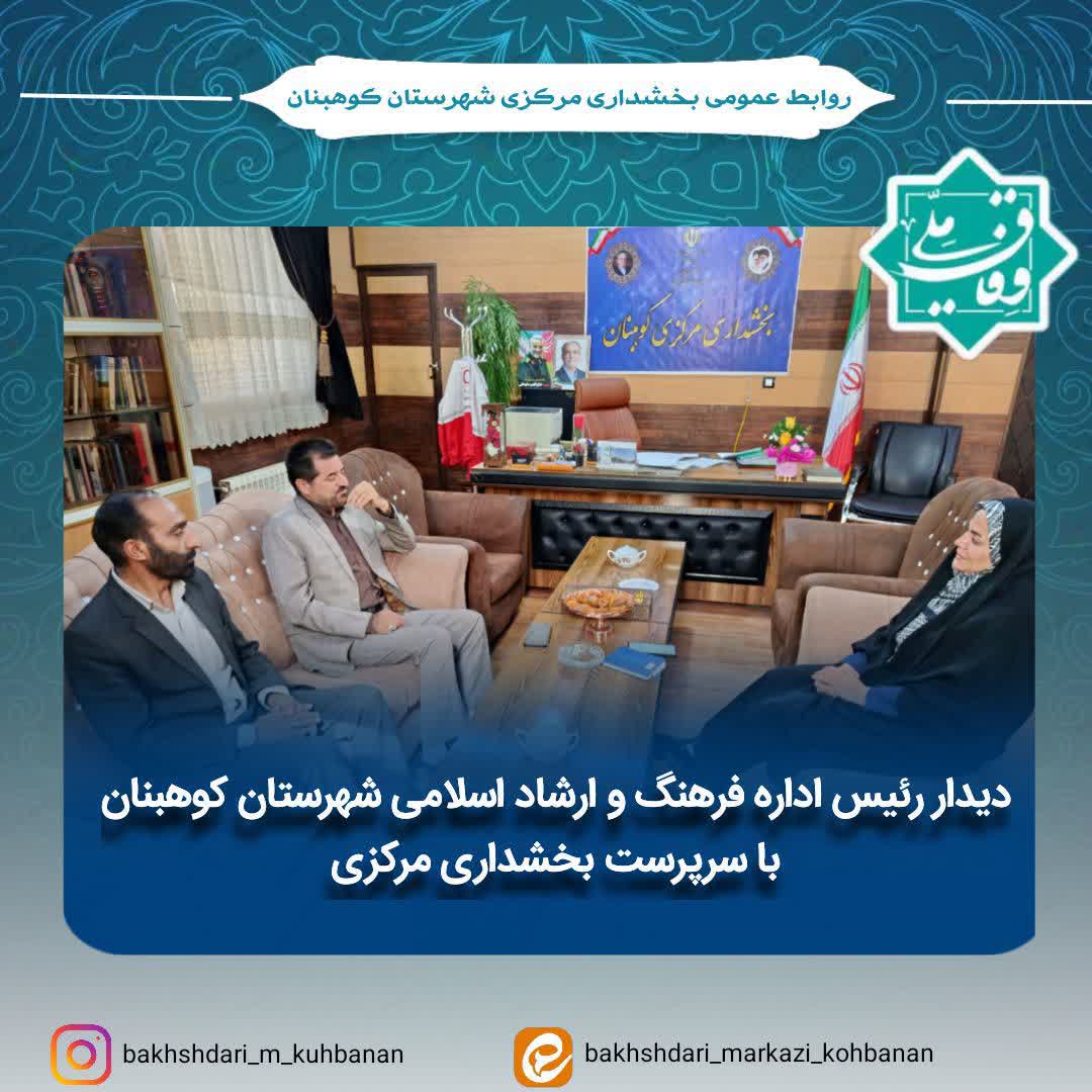 صبح امروز آقای حسینی نژاد رییس اداره فرهنگ و ارشاد اسلامی شهرستان کوهبنان به همراه آقای مومنی معاون، با سرپرست بخشداری مرکزی دیدار نمود .