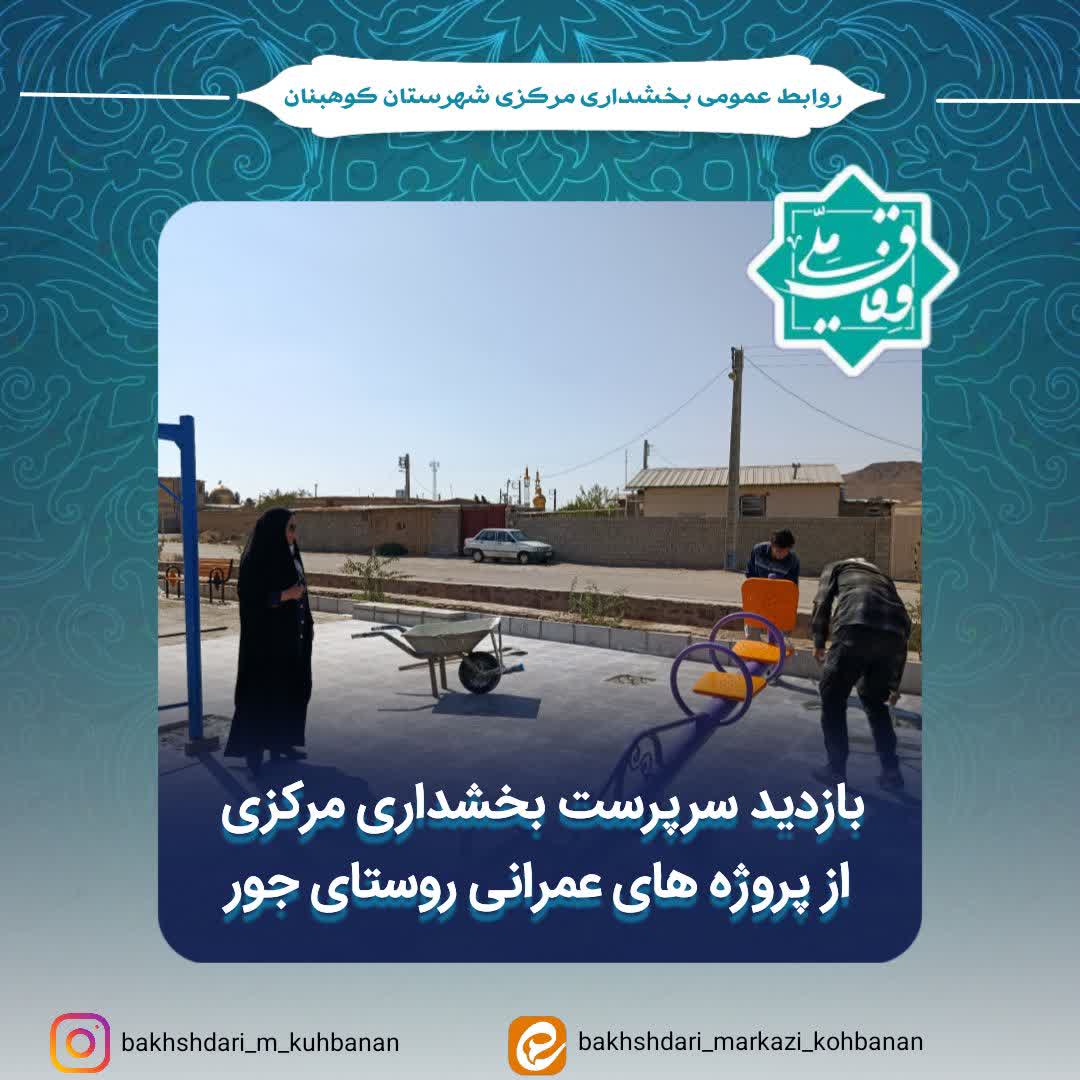صبح امروز، سرپرست بخشداری مرکزی شهرستان کوهبنان از روند اجرای پروژه عمرانی فرش موزائیک و تجهیز بوستان روستای جور بازدید کرد.در این بازدید، روند اجرا و میزان پیشرفت کار مورد بررسی قرار گرفت. صدیقه ایزدی سرپرست بخشداری مرکزی، ضمن بازدید میدانی از سطح روستا و بررسی مشکلات موجود، بر لزوم ساماندهی فضاهای عمومی و اصلاح نقاطی که چهره روستا را نازیبا کردهاند تأکید کرد. وی افزود: «روستای جور ظرفیتهای بسیاری برای توسعه و زیباسازی دارد و نیازمند اقدامات اساسی در این زمینه است . دهیار، شورای اسلامی و مردم با همکاری و مشارکت هم میتوانند در بهبود سیمای روستا و ارتقای کیفیت زندگی اهالی نقش مؤثری ایفا کنند.»