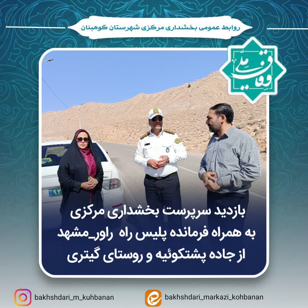 صبح امروز سرپرست بخشداری مرکزی شهرستان کوهبنان به همراه فرمانده پلیس راه راور – مشهد از محور ارتباطی پشکوئیه و روستای گیتری بازدید کردند.