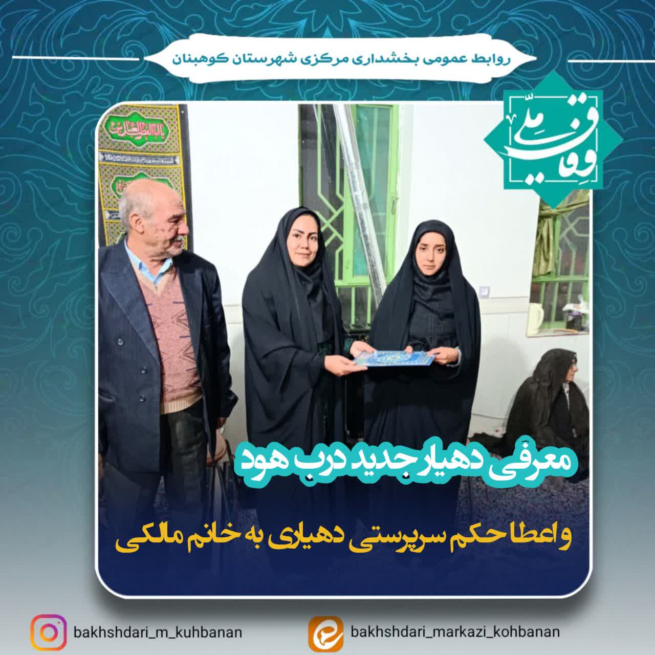 در ادامه این مراسم، سرپرست بخشداری مرکزی با اهدای حکمی خانم مالکی را بهعنوان سرپرست دهیاری روستای در هود منصوب کرد.
