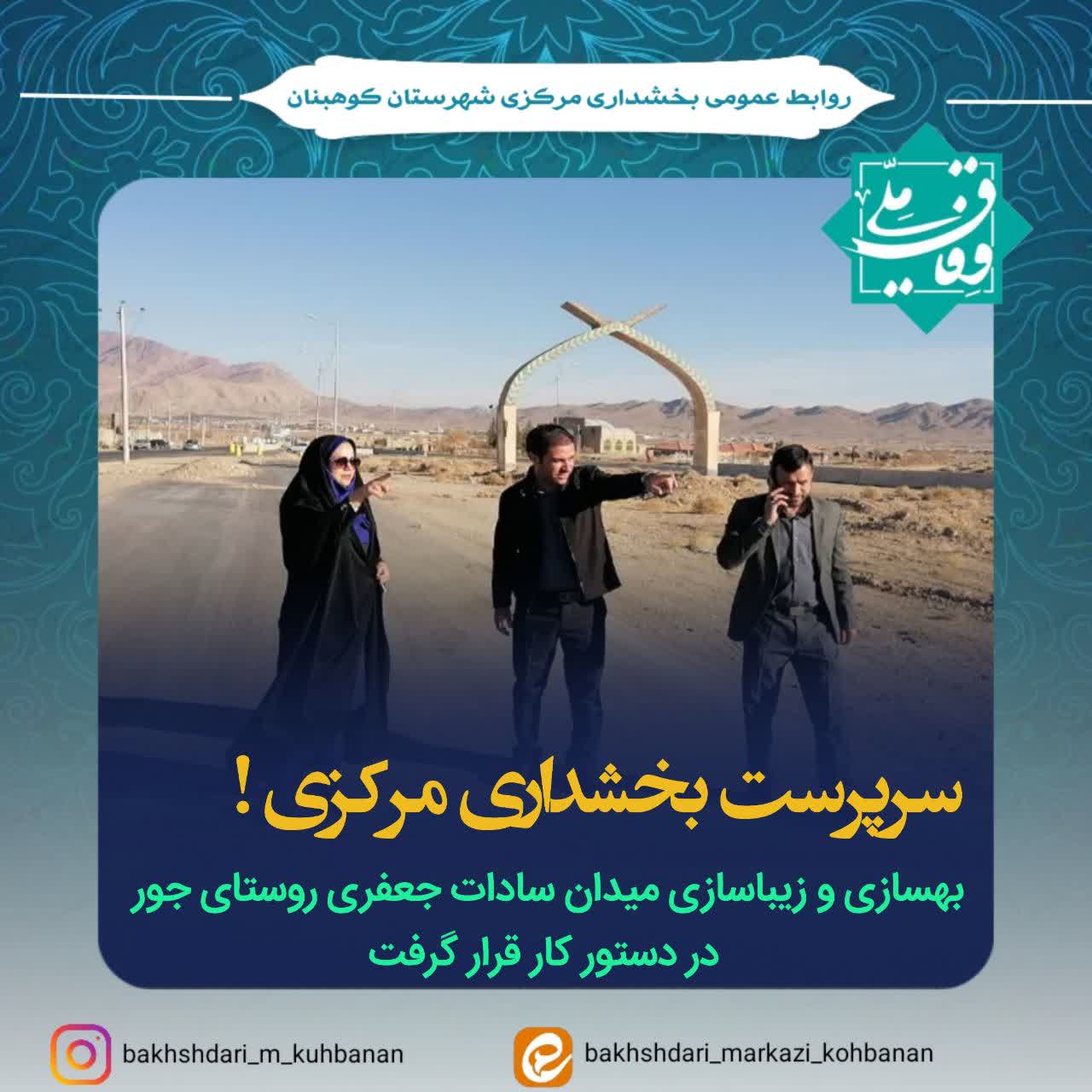 صبح امروز صدیقه ایزدی سرپرست بخشداری مرکزی به همراه معاون فرماندار و کارشناس فرمانداری و دهیار روستای جور با هدف بررسی وضعیت زیرساختی میدان سادات جعفری از این میدان بازدید به عمل آورد.
