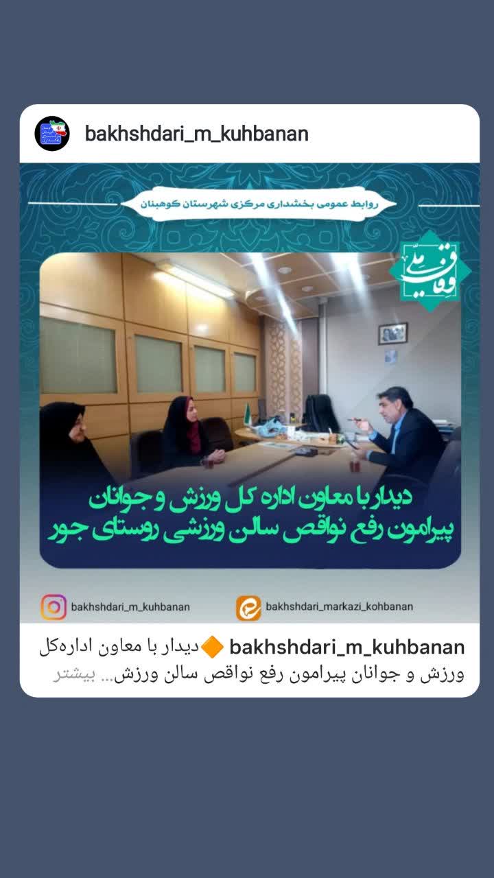 پیرامون رفع نواقص سالن ورزشی روستای جور در راستای ارتقای زیرساختهای ورزشی مناطق روستایی، سرپرست بخشداری مرکزی کوهبنان در دیداری با معاون ادارهکل ورزش و جوانان نواقص سالن ورزشی روستای جور را مطرح و در زمینه رفع نواقص بحث و تبادل نظر نمود . در این نشست، بخشدار مرکزی کوهبنان با تأکید بر اهمیت توسعه فضاهای ورزشی بهویژه در روستاها، نواقص موجود سالن ورزشی روستای جور از جنبههای عمرانی و تجهیزاتی از جمله عدم گاز و سیستم گرمایشی،عدمروشنایی مناسب و…را مطرح و راهکارهای لازم برای رفع آنها را ارائه نمود . همچنین وی بر ضرورت تسریع در بهسازی این مجموعه ورزشی بهمنظور فراهمسازی شرایط مناسب برای استفاده جوانان و ورزشکاران منطقه تأکید نمود. معاون ادارهکل ورزش و جوانان نیز ضمن استقبال از طرح موضوع، بر همراهی و همکاری آن ادارهکل در مسیر رفع نواقص و واگذاری ۵ ساله این سالن به دهیاری روستا دستورات لازم را صادر نمود .