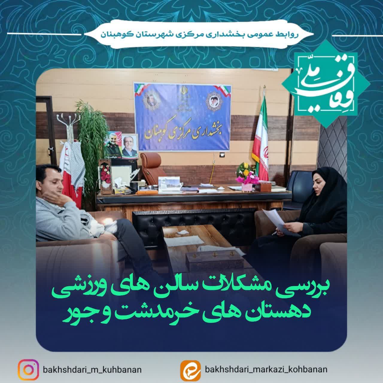 صبح امروز جلسه بررسی مشکلات و موانع موجود در سالنهای ورزشی دهستانهای خرمدشت و جور با حضور رئیس اداره ورزش و جوانان شهرستان و سرپرست بخشداری مرکزی در محل دفتر بخشداری برگزار شد.