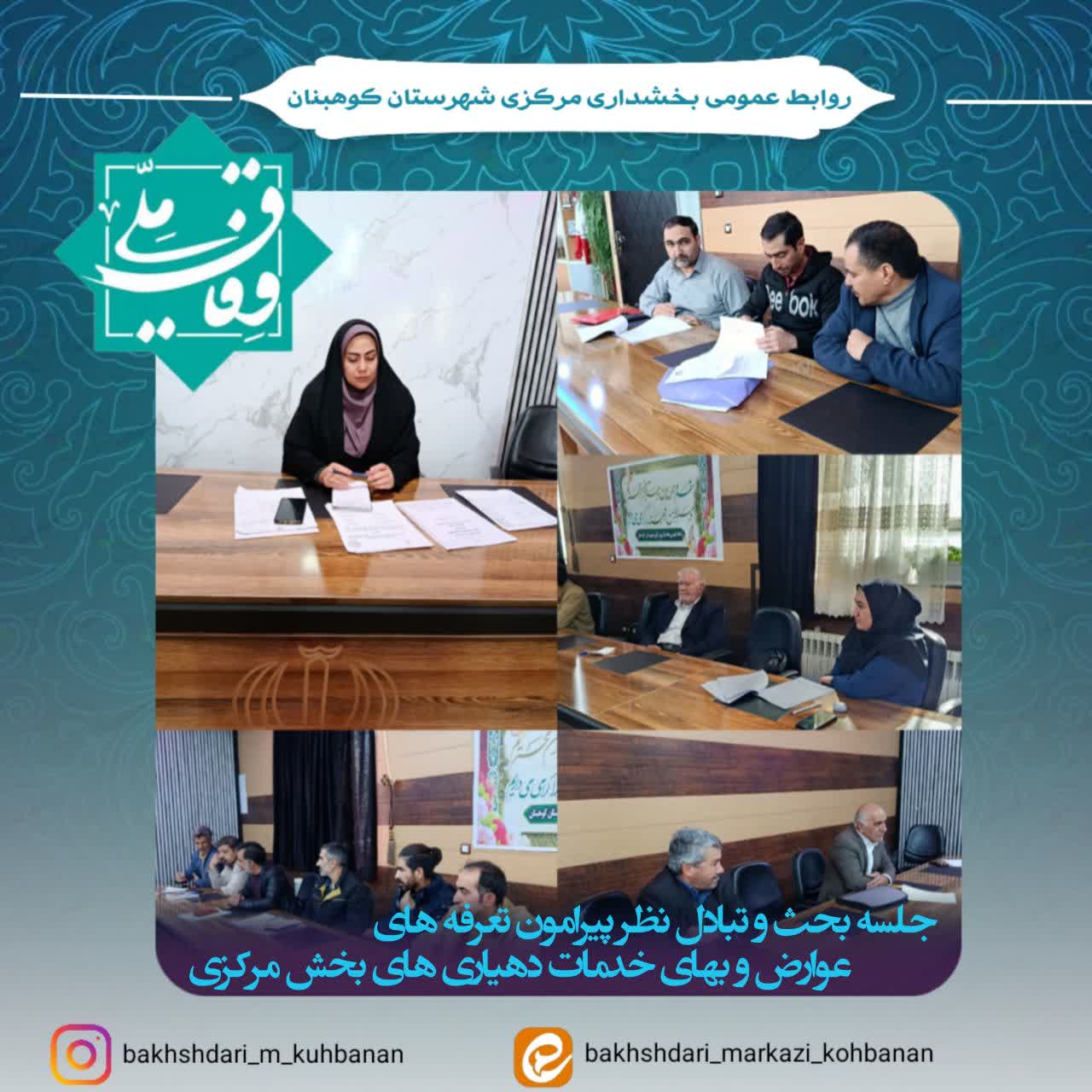 به گزارش روابط عمومی بخشداری مرکزی شهرستان کوهبنان، جلسهای با محوریت بحث و تبادل نظر پیرامون تعرفههای عوارض و بهای خدمات دهیاریهای بخش مرکزی، با حضور سرپرست بخشداری مرکزی و جمعی از مسئولان و دهیاران، برگزار شد.